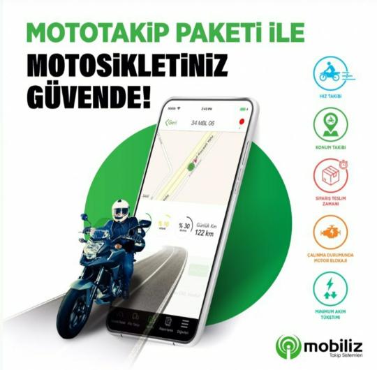 Motosikletlerin hızı, konumu, sipariş teslim zamanının izlenmesini sağlayan; motosikletin kontağı kapalı iken hareket ettirildiğinde anında bilgi sahibi olunan, motosikletin ve sürücünün güvenliğinden emin olunmasını sağlayan motosiklet kullanımına uygun pakettir.
